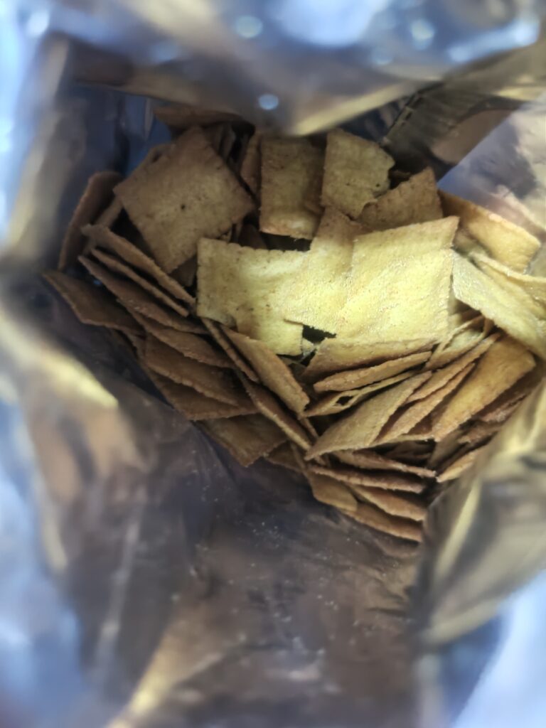一打開來就有一股濃郁的蔬菜味,外觀倒是跟包裝上差不多,吃起來味道有一點點菜埔餅的感覺,但又不太一樣,口感也蠻特別的,雖然整體味道我沒有很喜歡,但追劇的時候也是有點停不下來,吃到後來淡淡的辣味才開始浮現,大概是微辣的辣度