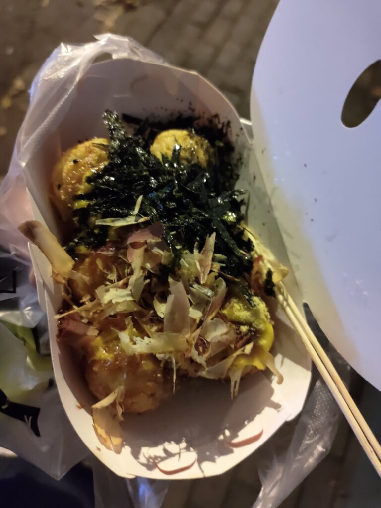 隨意挑了一家章魚燒店,10人民幣6顆還算ok