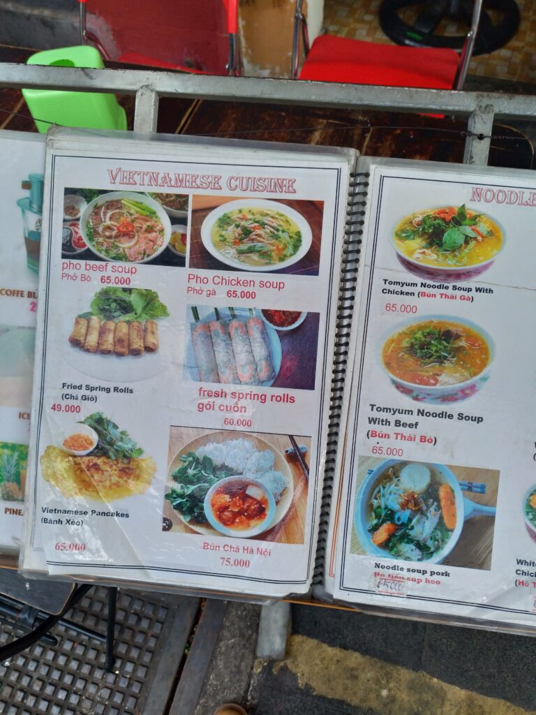 價位都蠻便宜的,牛肉河粉65000越南盾,蝦子春捲60000越南盾,加起來約台幣160元