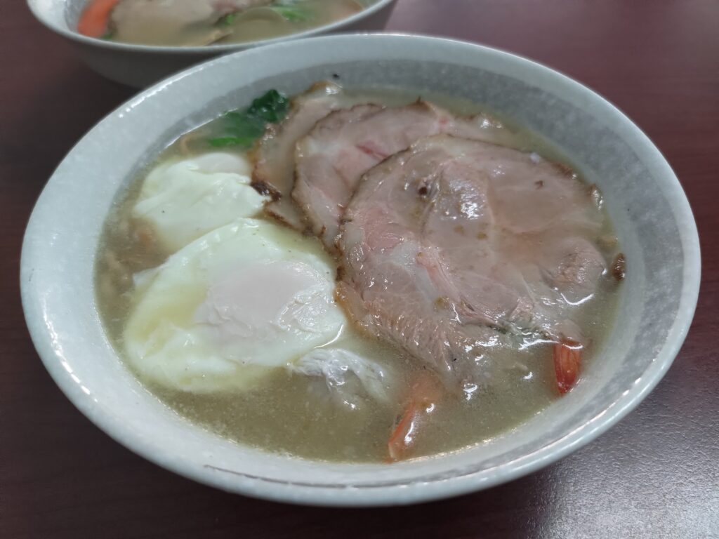 豬五花鍋燒110元,外觀看起來有點像拉麵讓我有點意外,叉燒給的很有誠意,整體味道也還不錯,不過我這碗有另加一顆蛋