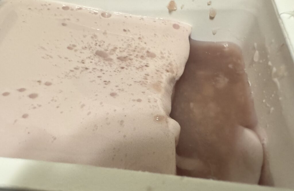打開來內部是滿滿的布丁,只是沒附湯匙有點小尷尬