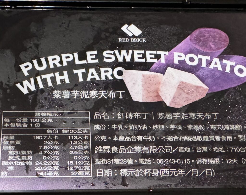 他的布丁單買價格都是46元,算還能接受的價格,有一些布丁是常規品項,但目前有兩個是季節限定,一個是摩卡布丁,一個是我今天點的紫薯芋頭布丁,想說先買一個試試看味道