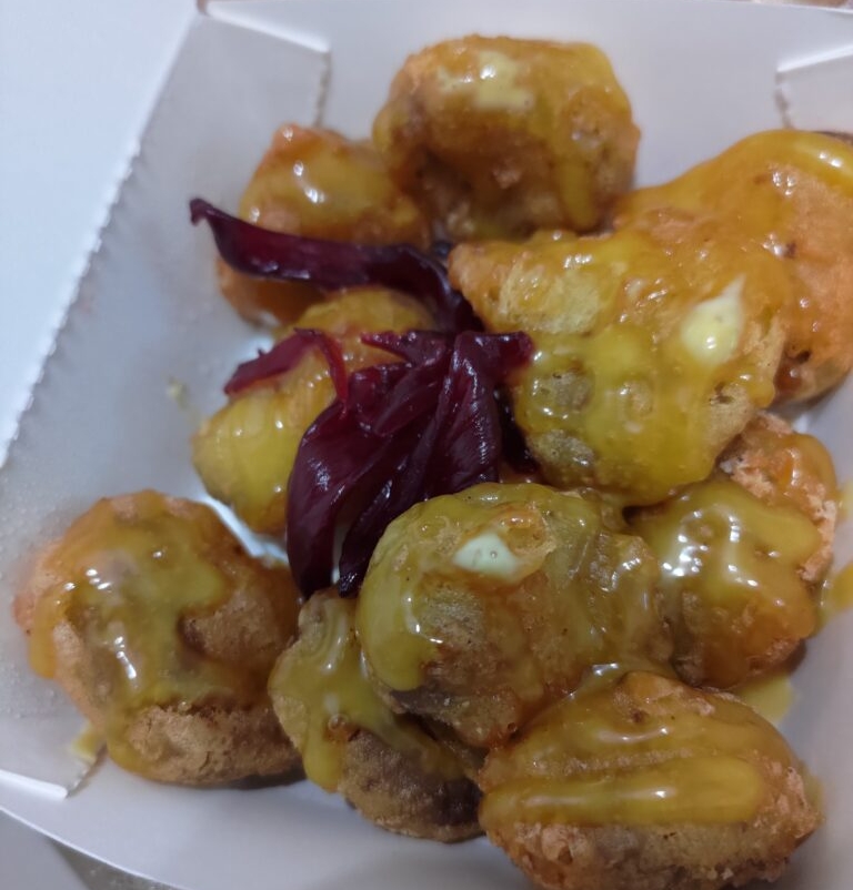 一份約10個,微甜微鹹味道蠻好的,外皮酥脆內部軟嫩,是個值得一試的甜點